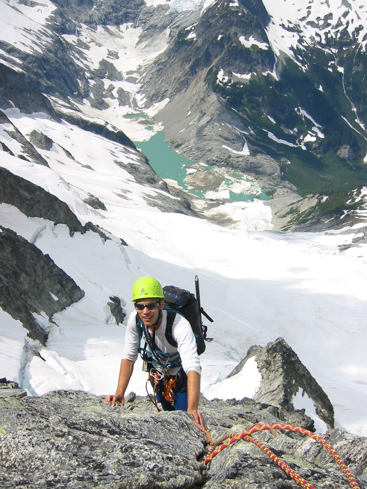 Upper part of the ridge. Awesome moderate climbing. Flat part of ridge visible way below...